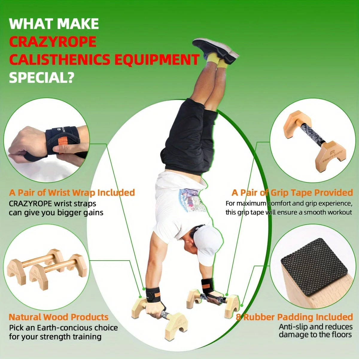 Elevate your workout with our 1 Pair Wooden Push-up Bar Stands. These premium gym accessories improve your form and reduce wrist strain for maximum results. Crafted from high-quality wood, these stands not only provide a comfortable grip but also add a touch of luxury to your fitness routine.
