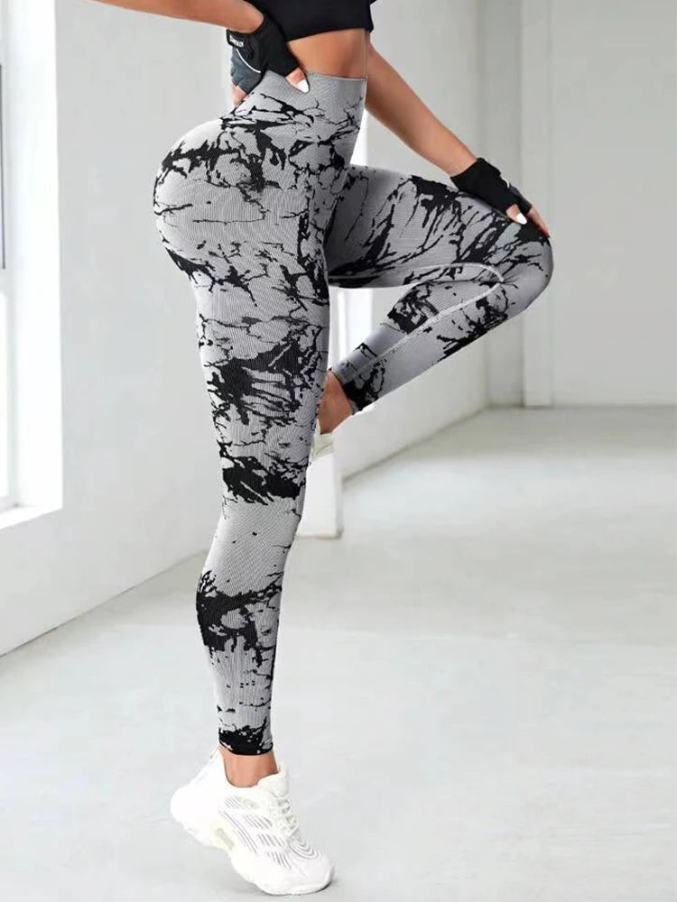 Seamless Jacquard Yoga Pants Elastic Butt Lift Scrunch Workout Tights Women's