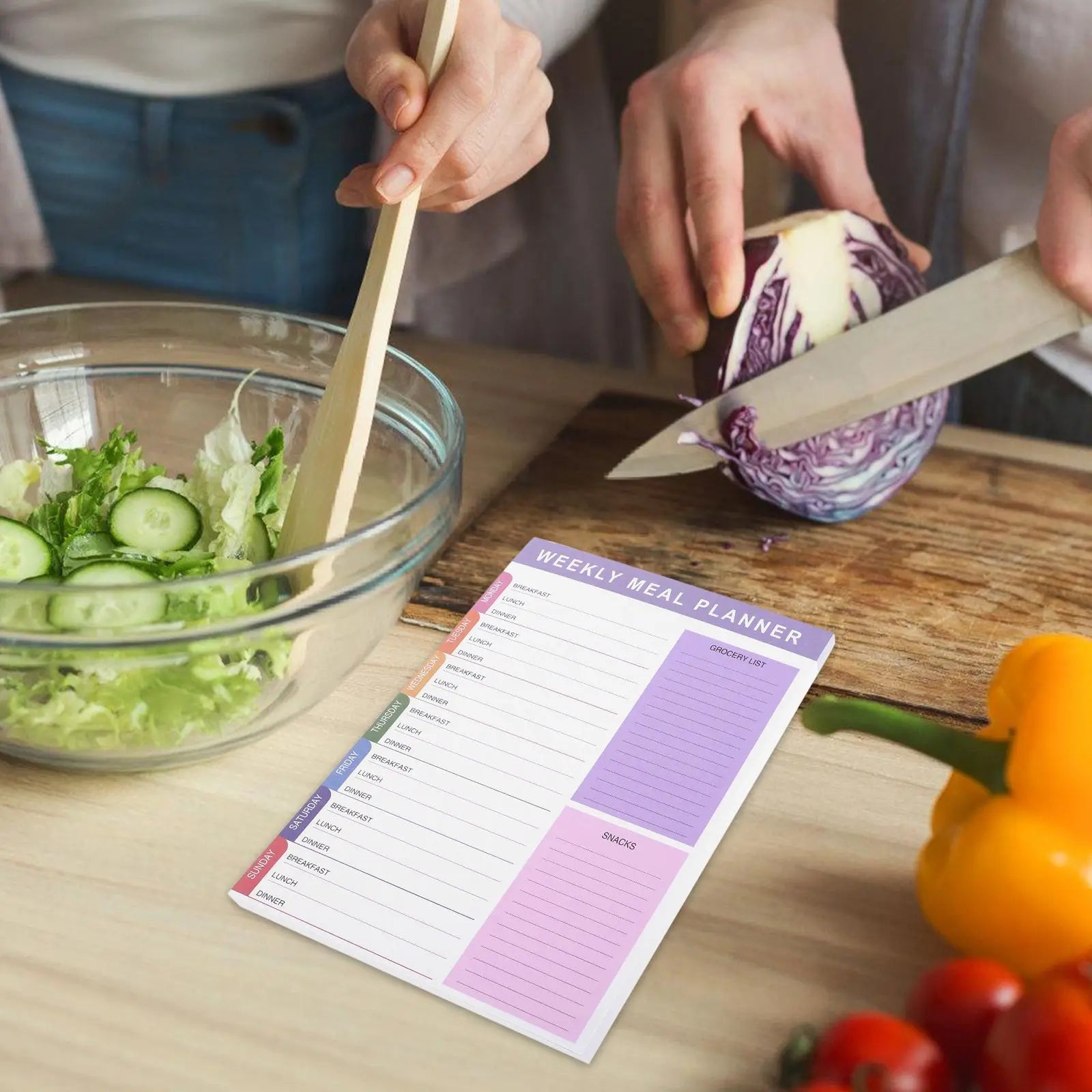 Simplify and optimize your meal planning process with the Planner Notepad. Each week, jot down your meal ideas and easily remove the sheet when you're finished. Featuring a magnetic backing, you can conveniently place it on your fridge for quick and convenient access. This notepad is perfect for organizing your grocery list and ensuring that you have all the necessary ingredients for your daily meals.